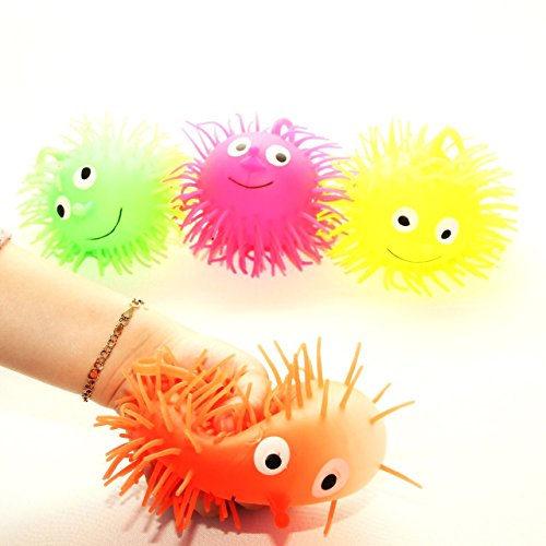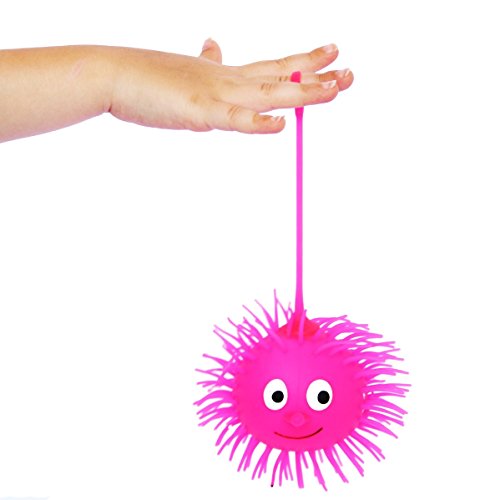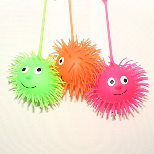Add some loveable fun to your day with the Puffer Balls. These light- up puffer balls makes a great party favor for parties and carnivals, in addition to providing therapeutic tactile and visual feedback, with an easy to grab 'gooey' feel. They will enhance your kid's fine motor skills in a fun way. Each ball are approximately 3.5" x 3.5 " with a 3 inch string. Packaged conveniently in a set of 6 assorted colors. Manufactured by Dazzling Toys.