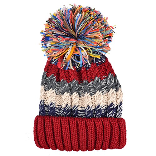 -. Title : Youngbox Bohemian Stripe Crochet Knit Slouchy Pom Pom Beanie Winter Hat