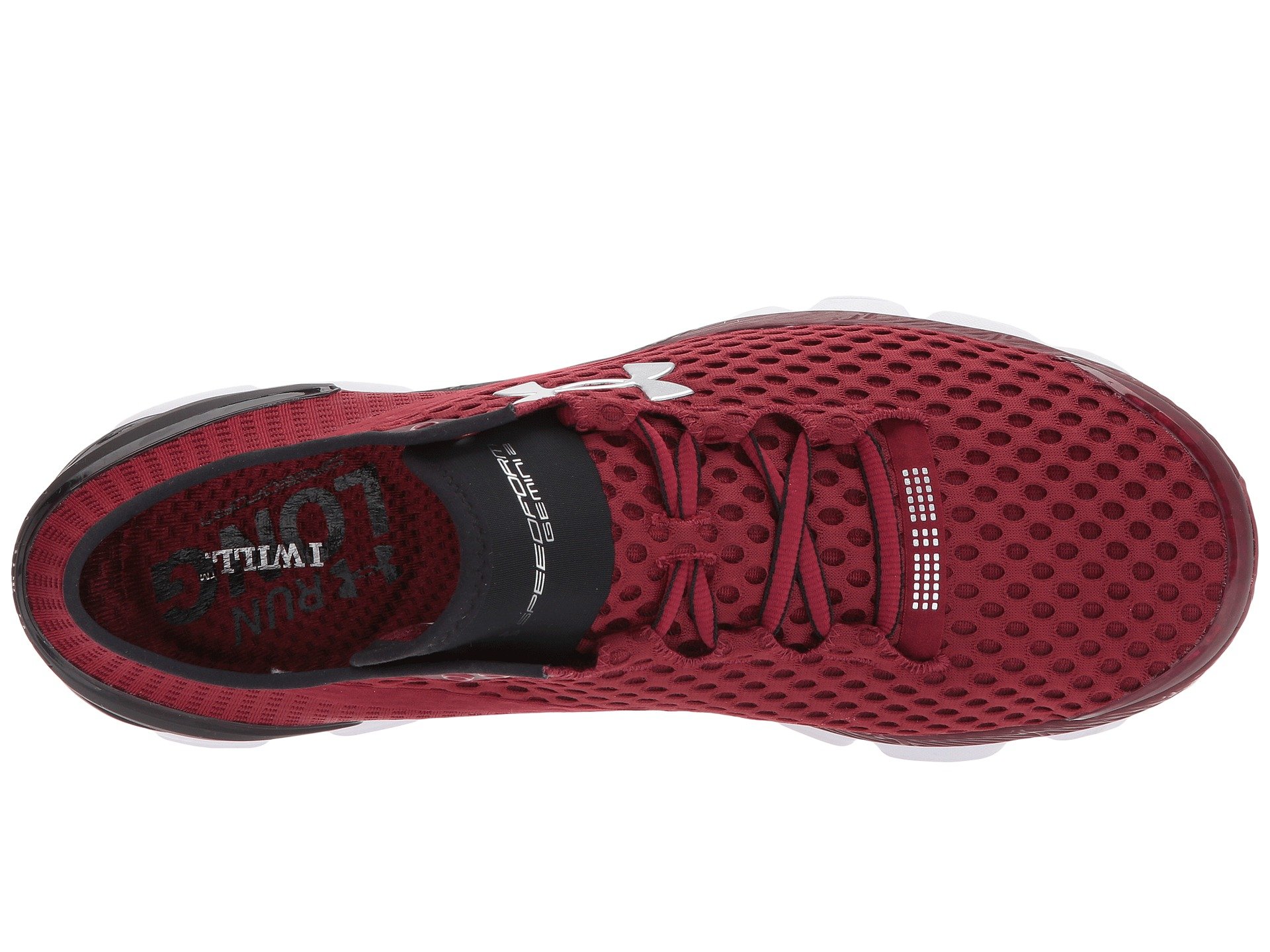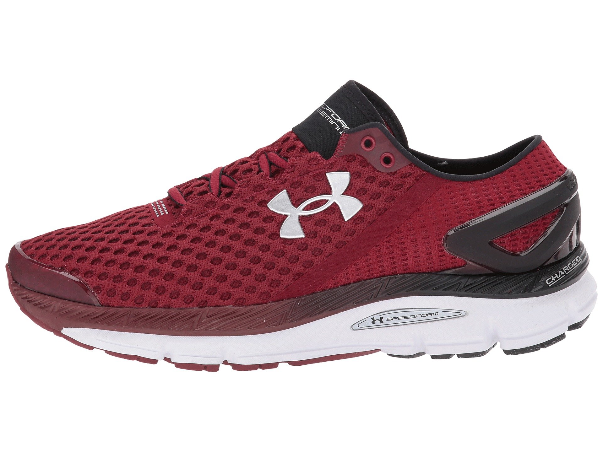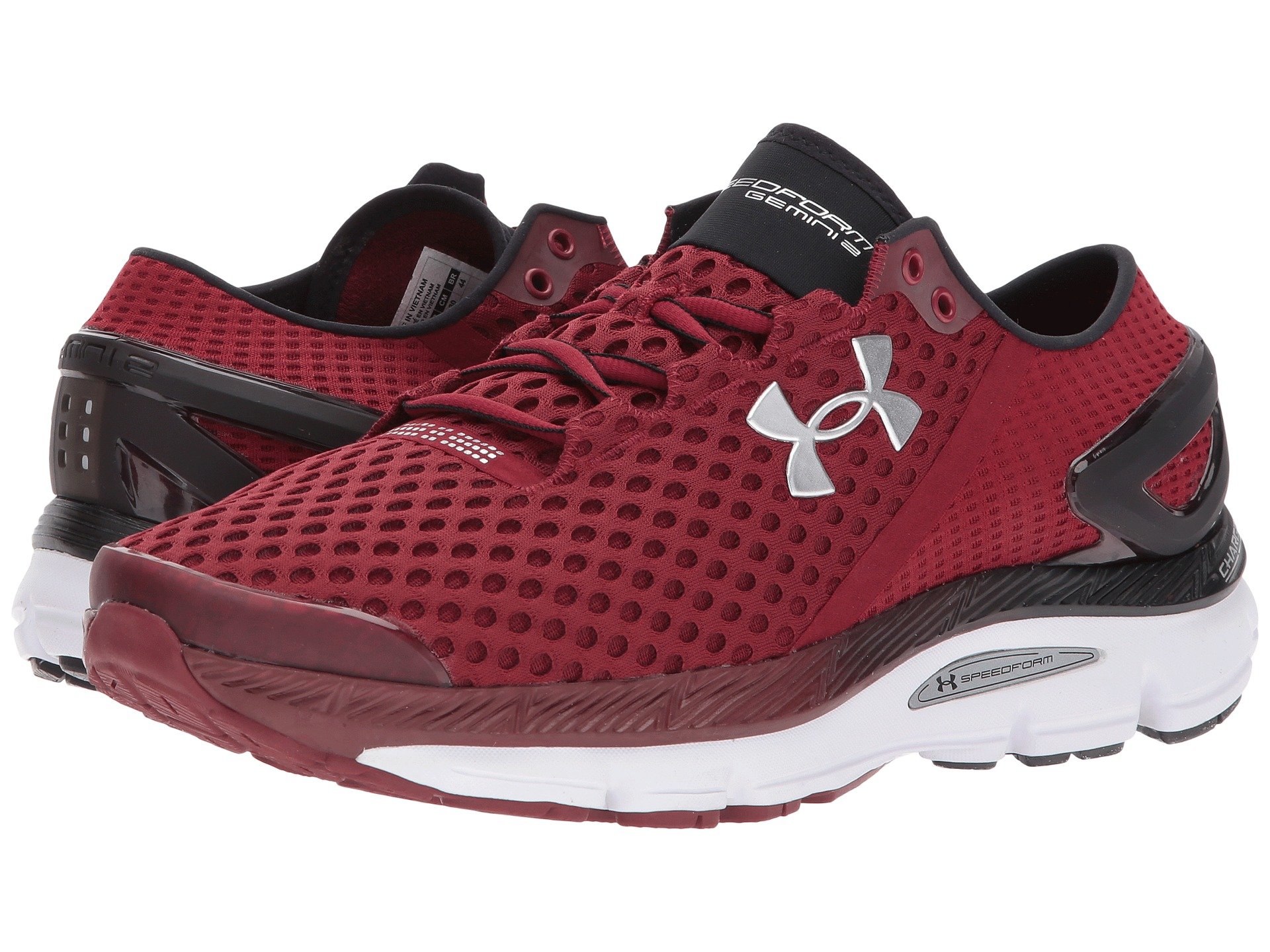 | Product Information SKU: #9023102Muscle through that last mile in the Under Armour? UA Speedform™ Gemini 2 running shoe!Built for the neutral runner. Breathable mesh and synthetic upper materials. Smooth, ultrasonic welded seaming with Bemis tape for next-to-skin support and comfort. Lace-up closure. Perforated upper for optimal ventilation. Durable molded toe cap.Thin comfort tongue and slightly padded collar. Breathable fabric lining offers a great in-shoe feel. Fixed, moisture-wicking sockliner.Dual-layer midsole features Charged Cushioning of top of Micro G? foam for an ideal blend of cushioned support and explosive responsiveness. ArchForm provides added support at the arch.Differential: 8 mmBlown rubber outsole with carbon heel for lightweight performance and lasting durability. Anatomically-placed flexed groves for enhanced transitions and a smoother ride. Imported. Product measurements were taken using size 10.5, width D - Medium. Please note that measurements may vary by size.Weight of footwear is based on a single item, not a pair.Measurements: Weight: 12 oz |
