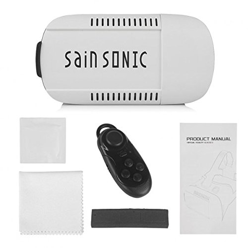 SainSonic VR-01 Gear VR - Virtual Reality Headset 3D Video Movie Game Glasses + Remote Bluetooth Controller, Focal and Pupil Distance Adjustment - White