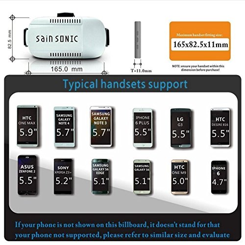 The SainSonic VR-01 Gear VR glasses is professional and made of high-quality plastic to have end-users immersive in games and videos. Pupil and focal distance can be adjusted with one button to get the best 3D experience. You can correct the position of phone at any time even while watching movies or playing games, it is convenient to make sure the middle lines of phone and glasses overlap. The humanized design of straps can distract part of pressure from the bridge of nose, comfortable for wearing. Fits for iPhone and Android phones with screen size within 6.0 inch, the max size of phone is 165*82.5*11mm.