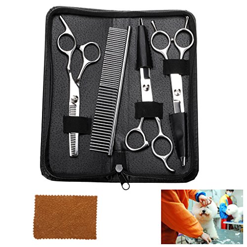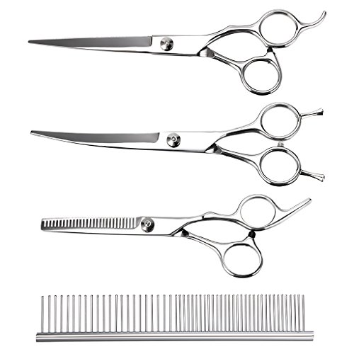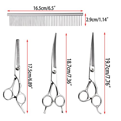 1*7.3" curved tip scissors 1*6.5" Thinning sheers 1*7.7" finishing/straight scissors 1*Grooming Comb 1*scissor case 1*Cleaning Cloth