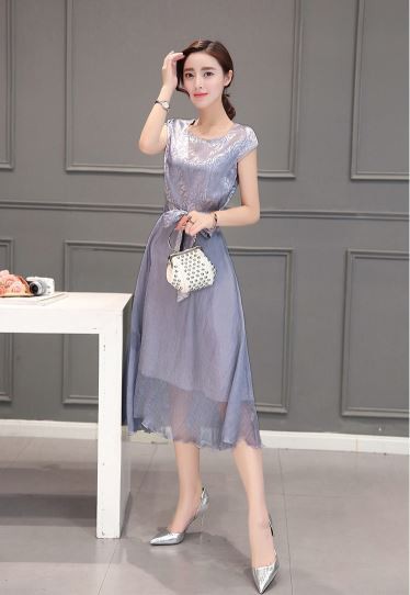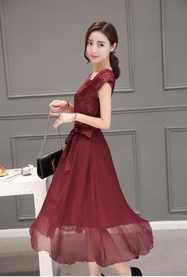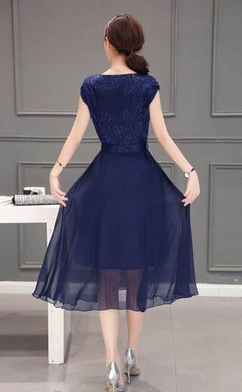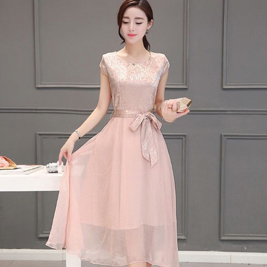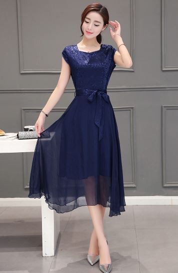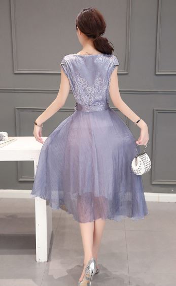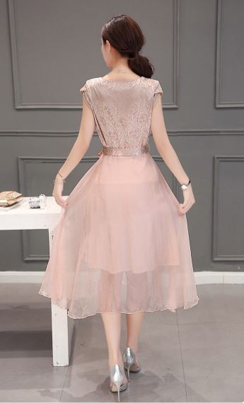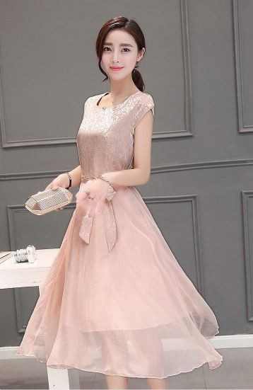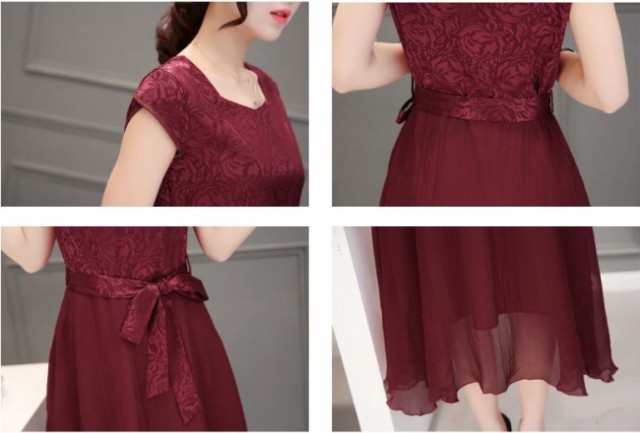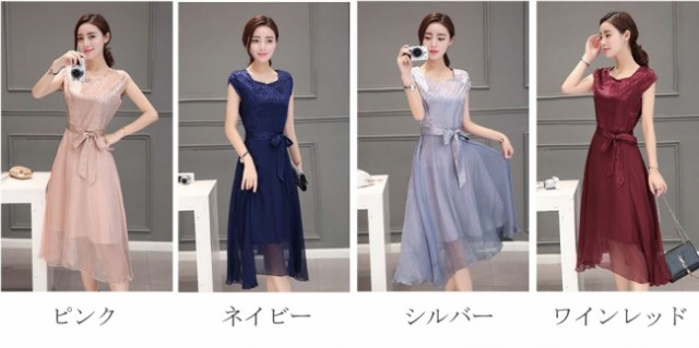 ウエストリボンで女性らしいシルエットのパーティードレスです。