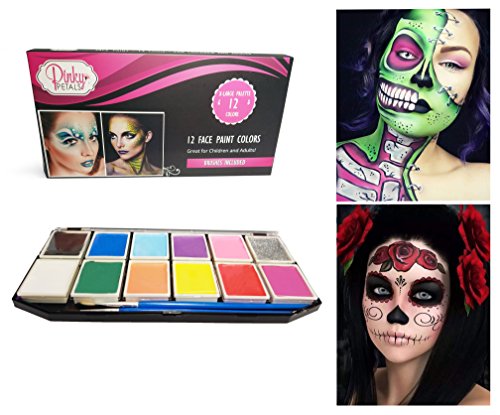 Title : Face Paint Kit for Kids and Adults - 12 Colors XL Set with 1 Glitter and 1 UV Glow Color - 2 Brushes Included, Safe Water-Based Non-Toxic by Pinky Petals