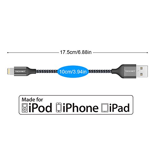 Lightning Cable, TeckNet PowerLink Premium Lightning to USB Cable (0.1M) Apple MFi Certified - Nylon Fiber, Perfect For the iPhone 7 7S 6 6S Plus, iPad Pro, Mini 4, Air 2, iPod Touch