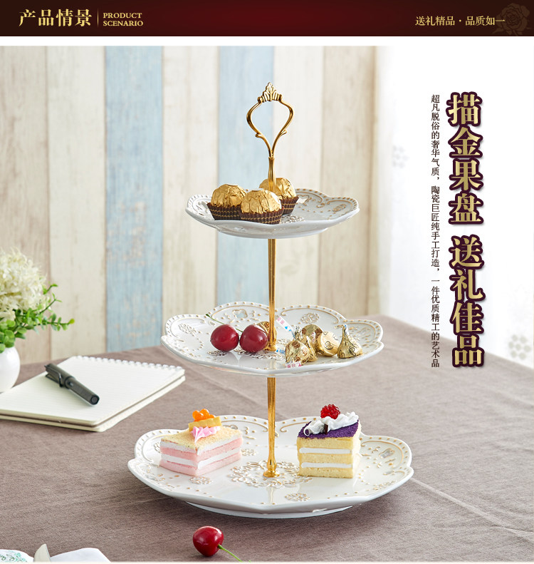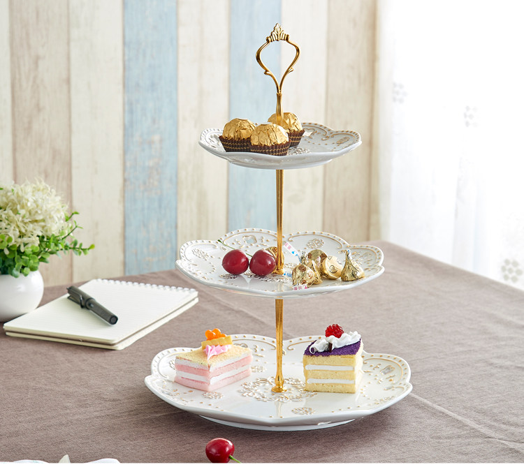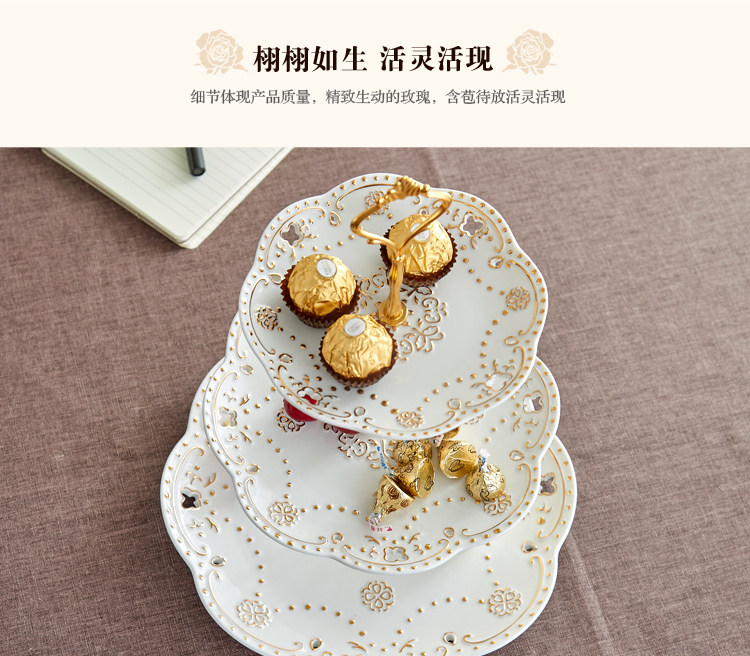 欧式陶瓷三层水果盘蛋糕架蛋糕盘下午茶点心盘时尚创意生日婚礼物