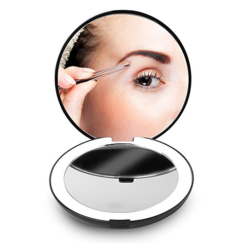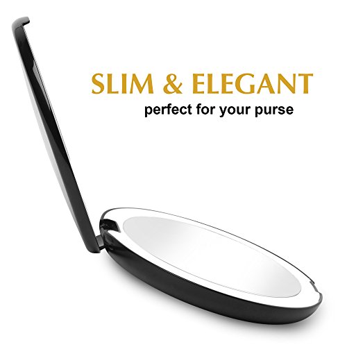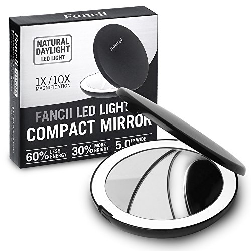 Fancii LED Lighted Travel Makeup Mirror, 1x/10x Magnification - Daylight LED, Compact, Portable, Large 5” Wide Illuminated Folding Mirror