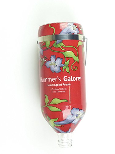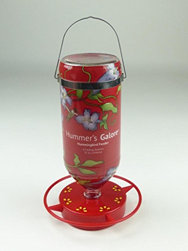 -. Binding : Lawn & Patio -. Brand : Hummers Galore® -. Feature : 1 Vine Design Hummingbird Feeder. / Metal hanger attached to feeder is ready to hang / 32 oz glass bottle-----glass helps delay spoilage of nectar, easy clean and fill / Vivid red base with imprinted vibrant yellow flower pedals , Printed with UV ink to help reduce sun damage. / Be sure to search Amazon for "Hummers Galore" to see our collection of feeders, brushes and nectar -. MPN : INDV-1 -. NumberOfItems : 1 -. PackageQuantity : 1 -. PartNumber : INDV-1 -. ProductGroup : Lawn & Patio -. ProductTypeName : OUTDOOR_LIVING -. Title : Hummers Galore, Hummingbird Feeder, Hanging Vine Design, Glass , 32 Oz