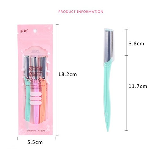 3Pcs Complete and Spared: Blue,Pink,Orange Color Eyebrow Razors.