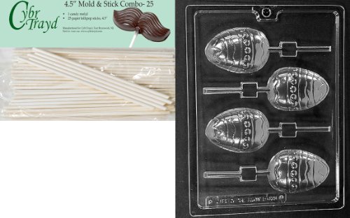 Cybrtrayd Decorated Egg Lolly Easter Chocolate Candy Mold with 25 4.5-Inch Lollipop Sticks