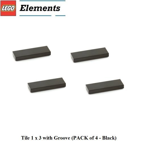 -. Title : L.E.G.O Parts: Tile 1 x 3 with Groove (PACK of 4 - Black)