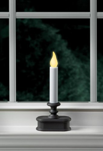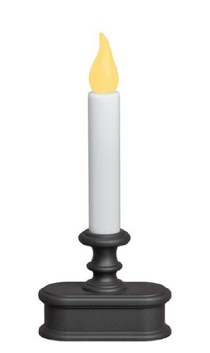 - Battery-operated LED window candle with realistic flickering light
