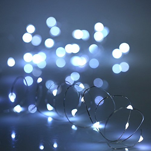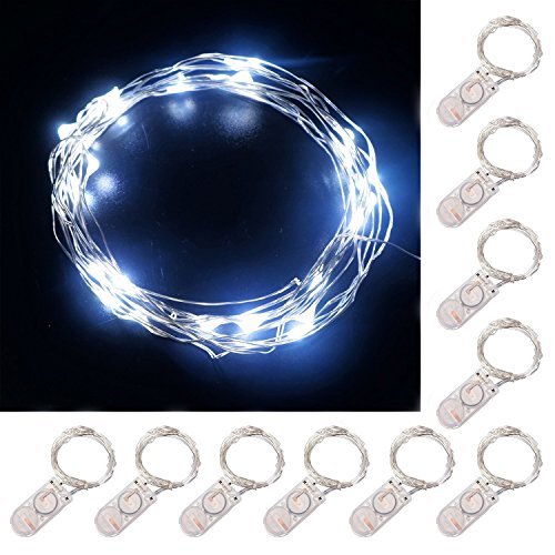 ZJMZZM Led Silver Wire String Lights, 10 Sets 20 Micro LEDS Operated by Battery Box, Perfect for Any DIY Decoration in Birthday, Wedding, Hallowmas and Other Party (6.8 Feet/2M, Pure White)