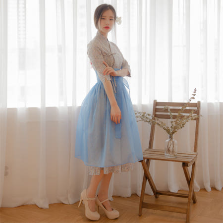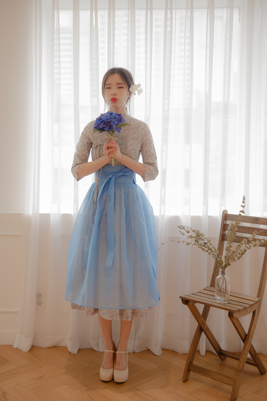 꽃닮 철릭원피스 허리치마 세트 하늘7부