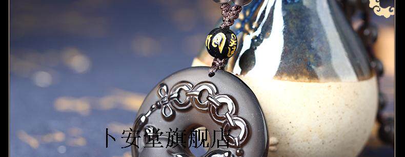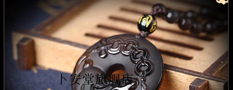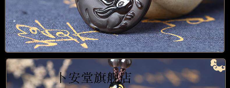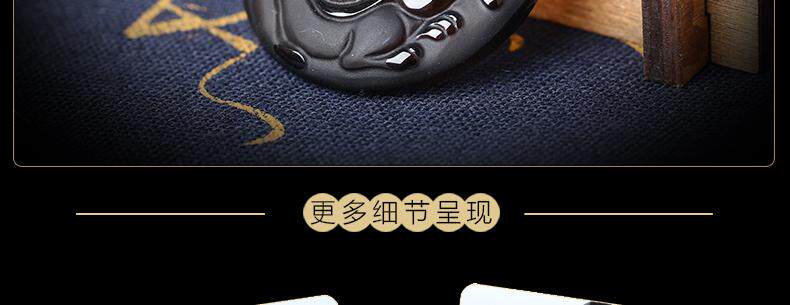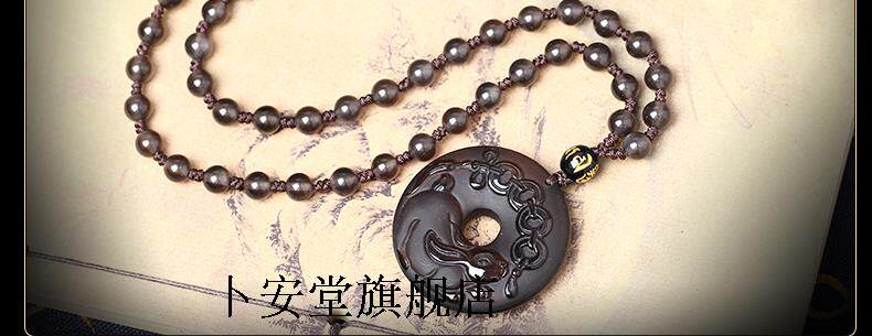 开光雪猊献珠冰种黑曜石吊坠生肖属兔开运吉祥物男女款