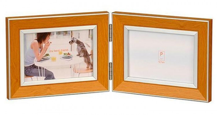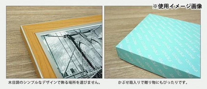 落ち着きのある木目調とシルバーラインが印象的なフォトフレームです。
