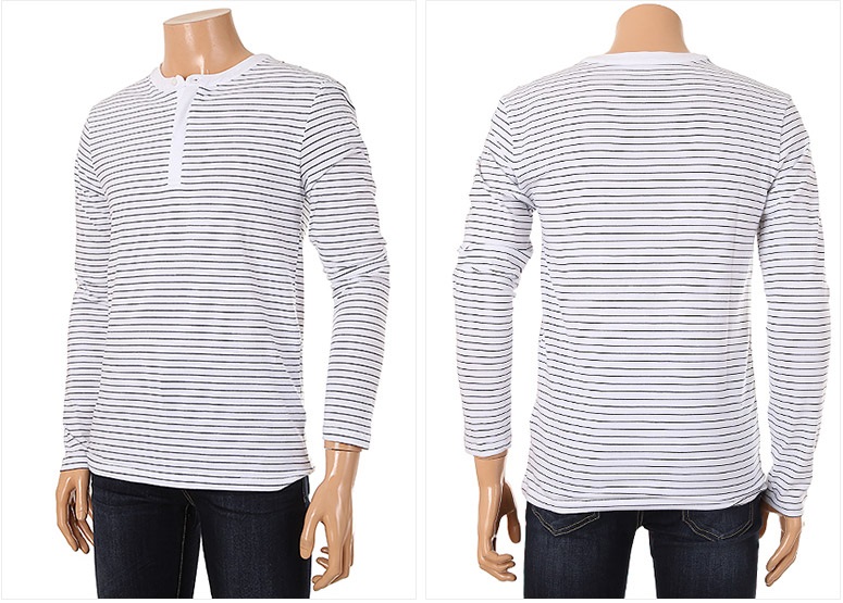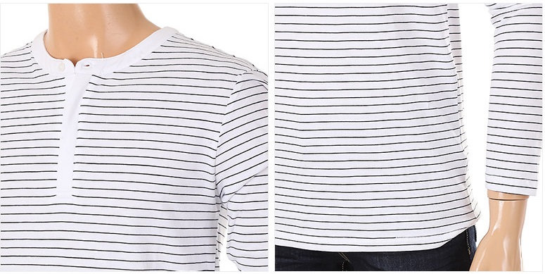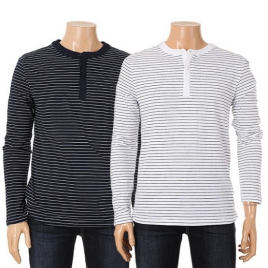 남여공용 히든단추스트라이프 헨리넥 티셔츠 입니다.