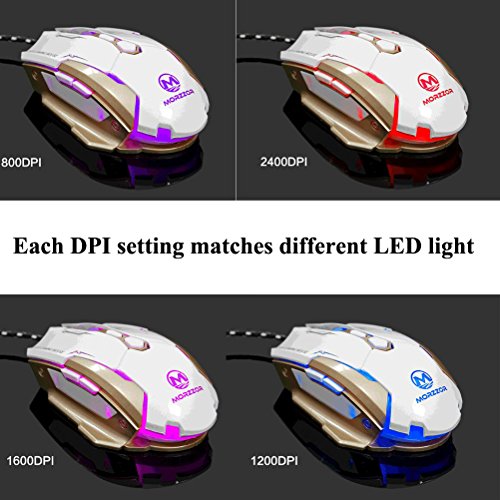 -. Feature : Perfect Hand Feel: Gaming mouse perfectly snugly fit under your palm; the ergonomic shape of the mouse gives gamers the most comfortable gaming experience ever, especially during the most testing of battles.Comparable to other logitech gaming mice apple wired mouse / High precision control with 4 DPI settings: 800 / 1200 / 1600 / 2400 DPI.Each DPI setting matches one different LED Light.You can change the LED light by click the DPI button.Enjoy the 4 adjustable Colors LED Light with constant single-light modes with different DPI setting.LED light can be turned off. / Ergonomic Wired optical mice design.Intelligent connectivity, no need to code, plug & play (No need CD driver).Metal bottom more stable when mouse moving,style more fashion as well. / Fire Key: triple click botton before the DPI button,more convenient for you to get a triple click, help you to get a fast speed than other players in the game. / Compatible system:Windows 98/ 2000/ ME/ NT / XP/ win 7/ win 8/ win 10/ Mac OS and other OS,plug & play.