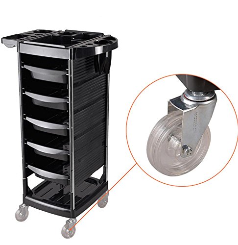 Features: 5 drawers design, can store more things. Meal holder is made of iron, more firm and more durable. High quality 4 omni-directional wheels, convenient to change direction. It can be used for compounding hair dye or storing cosmetic products. 0