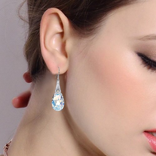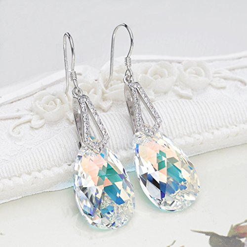 Swarovski® Crystals Color: Iridescent Aurora Borealis AB; CZ Color: Clear; Earring Earring Length: 1.8in, Earring Width: 0.5in; Each Earring Weight: 3.5g; ATTENTION: The Iridescent Aurora Borealis AB Swarovski® Crystals will sparkle and show different colors when they are watched in different angle of view.