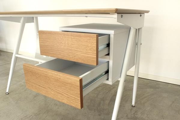| シュッとしたスタイリッシュな脚部と温もりのある突板貼りの天板がおしゃれなデスク。 デスクに引出しと書類収納ラックを組み合わせたマルチスタイル。コンパクトでありながら十分な収納力を持ちあわせたアイテム。 |
