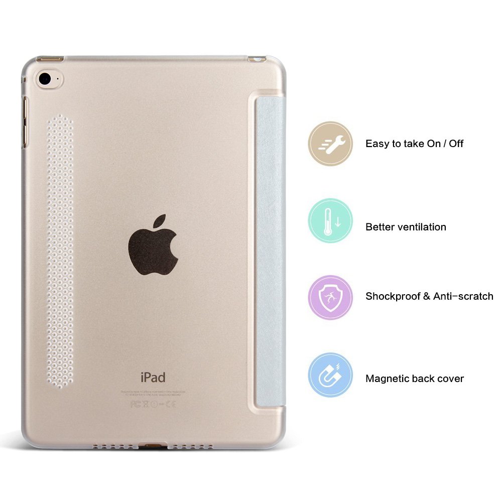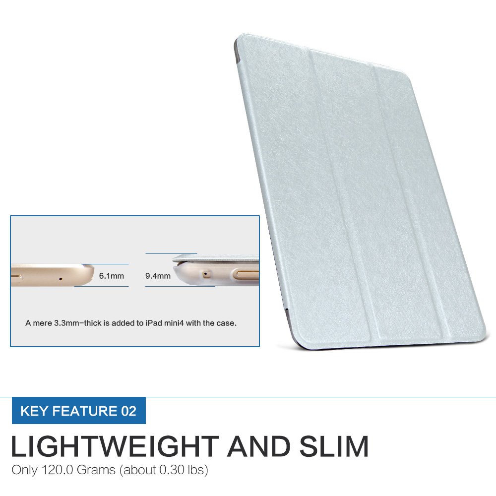 GOKU iPad MiNi 4 Protective Case Ultra Thin Lightest Three Stand Features Shock Prevention PU Leather Case Cover Back Case Retractable 5 Color