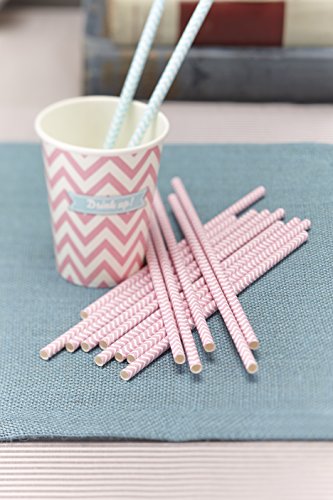 Ginger Ray Chevron Divine Powder Paper Straws, Pink