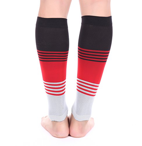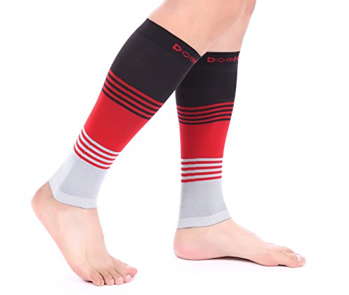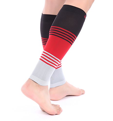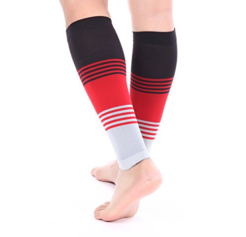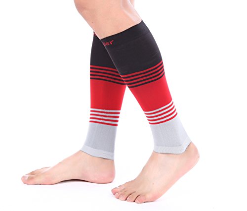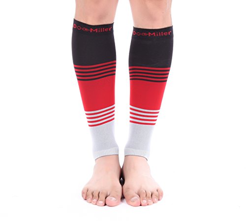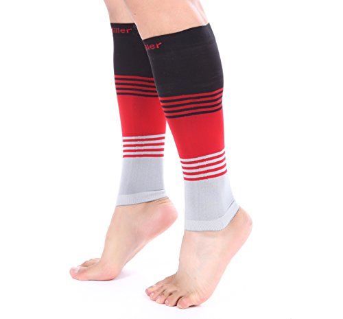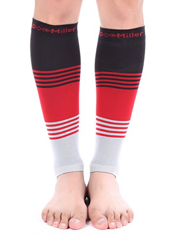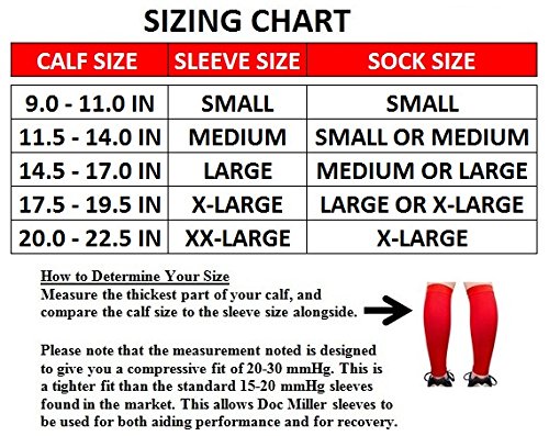 Doc Miller Calf Compression Sleeves are made of Durable, Breathable, Comfortable, Premium fabric made of high-grade Nylon (77%) and Spandex (23%) for a snug, comfortable, compressive fit. The sleeves aid in faster recovery for improved performance and support. By boosting blood circulation in your legs and preventing injuries, the sleeves allows you to feel fresher for more activity. The perfect graduated support ranging from 20-30 mmHg allows for more blood flow where needed. Perfect opaqueness provides a professional look and feel and the compression lasts a long time. The open toe version can be used as pregnancy maternity stockings. What Size Should You Get? The sizing chart displays product sizes for a range of calf sizes including plus sizes. Who Should Use It Effective for both men, women and teens, use them for a wide range of activities - from warming up to sessions of Tennis, Basketball, Racquetball, Football, Soccer, Hiking, Cross Fit, and other athletic activity. Fabric characteristics keep it comfortable regardless of season. If you are pregnant, in nursing as a nurse, in retail or construction this product will prevent soreness and aching feet. If you travel by air, this product may help reduce fatigue and Deep Vein Thrombosis (DVT). This product may help those suffering from lymphedema, neuropathy, sciatica, calf cramps, spider or varicose veins, venous insufficiency, shin splints, calf pain, swelling in the feet, inflammation, pain in leg, soreness and aids in faster recovery from sports activities and running. Studies show compression accelerates recovery after workout by increased blood circulation. This product may also help you with Restless Legs Syndrome (RLS). Don't wait anymore! Experience the benefits yourself. Different sizes sell out - if you see your favorite color/size click Add to Cart. Your calves and legs will thank you! 0 |