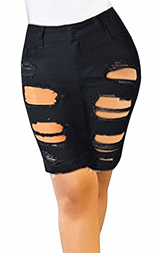 -. Title : Ermonn Womens High Waist Washed Distressed Stretchy Denim Bermuda Shorts Jeans Plus Size