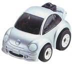 A car with a mainspring mounted on a small car body deforming the actual car.