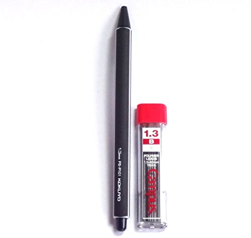 KOKUYO Enpitsu Mechanical Pencil, 1.3mm, Black (PS-P101D-1P) + Mechanical Pencil Lead, 1.3mm, B, 16 Leads (PSR-CB13N) Set(Japan Import) [Komainu-Dou Original Package]