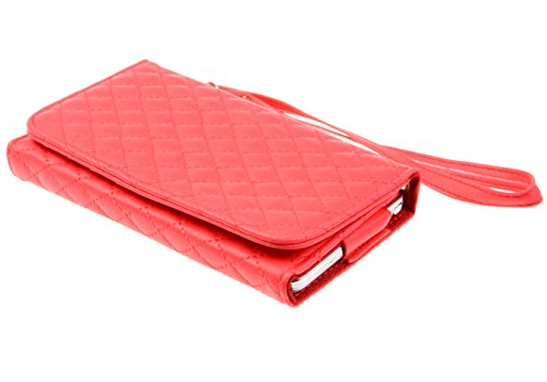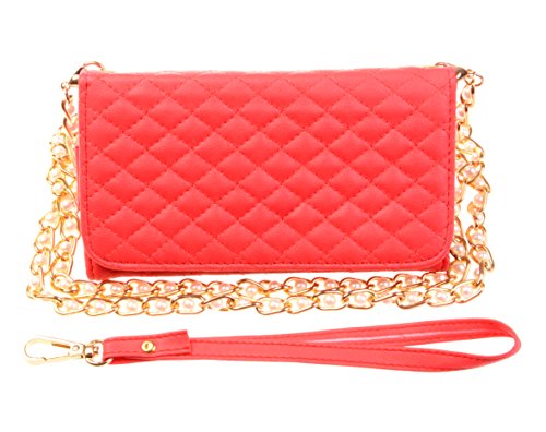 - Feature : Product fits for various phones including: Apple iPhone 5/5S, Samsung Galaxy Note 2/3, Samsung S4,S5 and so on / Made of high quality and durable PU leather / Contians a removable hand strap and metal shoulder chain / Extra protion of your devices against drop, scratch and dirt / Multiple card slots and pouch for cash and cards.
