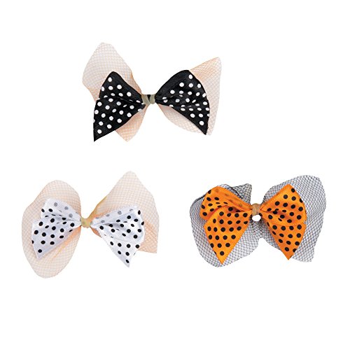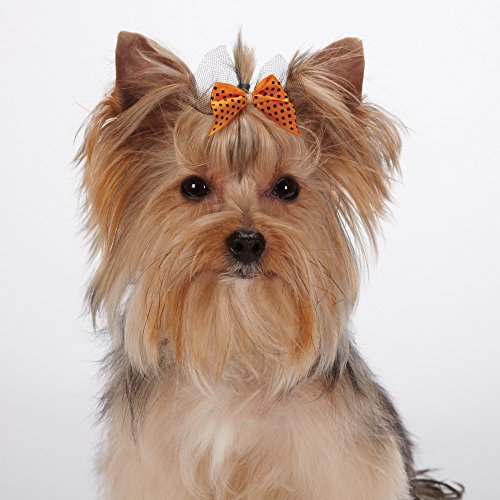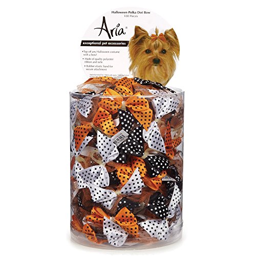 -. Feature : The perfect finishing touch for a dog's Halloween costume / Add a touch of seasonal color to any dog's hair style / Polka-dotted satin bows in Halloween colors with tulle accents / With elastic bands for easy attachment / Canister of 100 2¼" bows