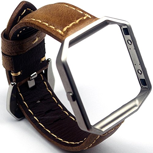 -. Title : Cheboom Fitbit Blaze Bands For Men Women,Genuine Leather Replacement Bracelet Strap With Link Stainless Steel Frame,Smart Fitness Retro Style Watch Band/Tan Band Large