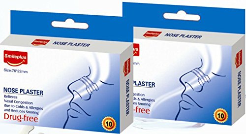 -. Binding : Health and Beauty -. Brand : Smileplus -. EAN : 0754242286202 -. Feature : Standard Size, Pack of 10. / Please avoid using in places where there is too much oil/sweat exposure / Helps reduce disturbed sleep for self & others, Most economical pack for your average monthly requirement. / Easy to Install (Hold on to it once stuck onto nose for sometime before you leave for bed) / NO RETURNABLE. -. IsAdultProduct : 0 -. Label : Smileplus -. Manufacturer : Smileplus -. MPN : NA9847622 -. PackageQuantity : 2 -. PartNumber : NA9847622 -. ProductGroup : Health and Beauty -. ProductTypeName : HEALTH_PERSONAL_CARE -. Publisher : Smileplus -. Studio : Smileplus -. Title : Smileplus Anti Snoring Nasal Strips (Pack of 10) (2) -. UPC : 754242286202