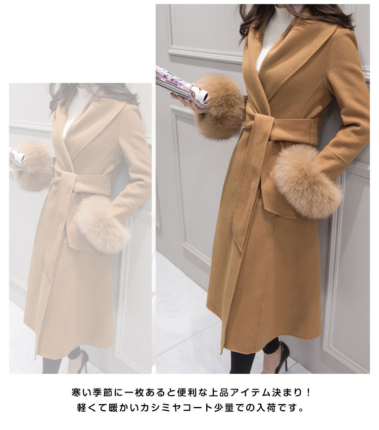| 寒い季節に一枚あると便利な上品アイテム決まり!軽くて暖かいカシミヤコート少量での入荷です。ウエストにかけてきれいにシェイプされ、裾へ向けて広がった美しいシルエットです。ベルトは高い位置にデザインされ、足長効果があり、ウエストを細くスタイルよくみせます。保温性に富んだカシミヤは、光が当たる度に美しい光沢を放ちます。パンツスタイルはもちろん、フォーマルなスタイルでもエレガントに着こなせます。 | |