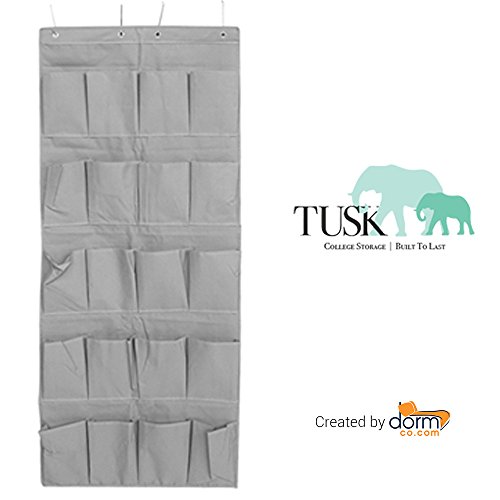 -. Binding : Kitchen -. Brand : DormCo -. Color : Gray -. Feature : Made of breathable material / Attaches easily and securely to any door / Holds heels, flats, slippers or other footwear / Can also be used for other accessories / Dimensions: 22" W x 53.5" H -. Label : DormCo -. Manufacturer : DormCo -. MPN : E3-3-2-25406-0003 -. PartNumber : E3-3-2-25406-0003 -. ProductGroup : Home -. ProductTypeName : HOME -. Publisher : DormCo -. Studio : DormCo -. Title : Hanging Over-The-Door Shoe Pockets - TUSK College Storage - Gray