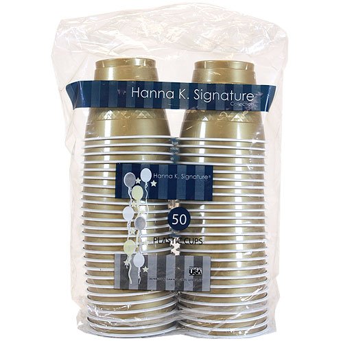 Hanna K. Signature Collection 50 Count Plastic Cup, 9-Ounce, Gold
