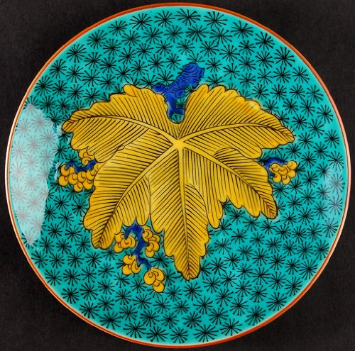 청교 쿠타니야키 5 호접시 고구곡 청수수목잎 문 MH-7