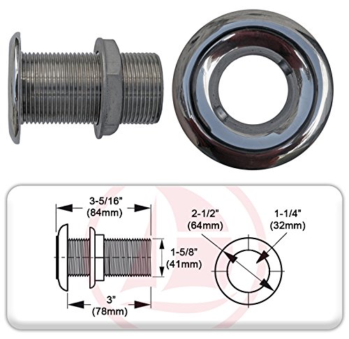 -. Title : 1-1/4” Threaded Mushroom Head Thru Hull Fitting 316 Stainless Steel- Five Oceans