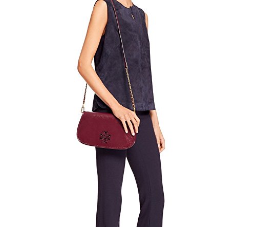 - Feature : Defined by a clean, versatile shape punctuated with a cut-out double-T logo, our Britten Patent Clutch is made of glossy, textured leather. The style features a zip compartment on the inside and another one hidden beneath the flap - great for a phone and keys. It doubles as a hands-free cross-body when you attach the optional, adjustable chain-adorned strap. / Holds a small wallet, a phone, lipstick and a makeup compact. Leather. Foldover flap with magnetic snap closure. Adjustable, removable leather and chain strap with 23" (58.5 cm) drop. Exterior zipper pocket underneath flap. Exterior slit pocket at back. Interior zipper pocket. Height: 6.57" (16.5 cm) Length: 9.96" (25 cm)