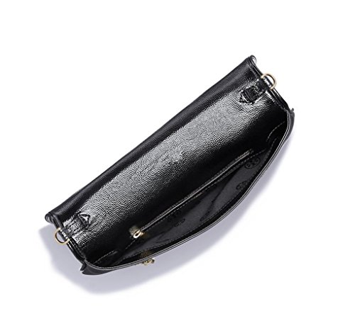 - Title : Tory Burch Britten Patent Clutch Black Leather Handbag Bag New