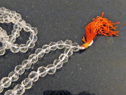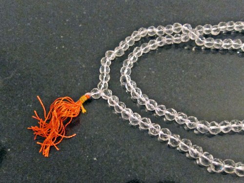 - Feature : Crystal aids concentration, cols the body, and calms the mind. Wearing a crystal mals ensures a sound and undisturbed sleep. / This Crystal Mala should be used to pacify the malefic effects of Planet Venus or to strengthen this planet in ones Horoscope. This mala can be worn by persons having their zodiac signs as Taurus (Vrashabh Rashi) and Libra ( Tula Rashi ) with wonderful results. / It is a transparent stone with lustre and is cool in nature. According to Astorlogy it is related to Planet Venus. It is a substitute of Diamond. It has the same qualities as the diamond and therefore it can be easily worn without hesitation. / Total number of beads =(108+1) 109 / Keep in a place of sanctity.Wash them occasionally to remove dirt and dust.