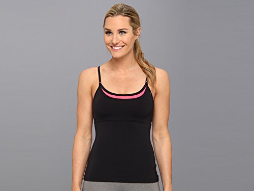 Adjustable spaghetti straps. Support shelf bra with removable cups. Interior stash pocket at center chest. Contrast mesh inserts add visual interest. Straight hemline. 78% nylon, 22% spandex. Machine wash cold, tumble dry low. Made in the U.S.A. and imported.