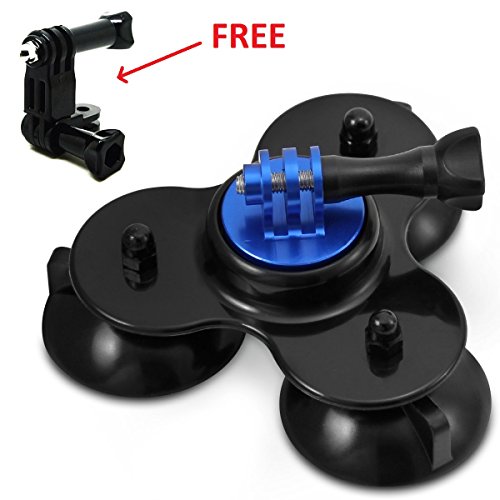 MazeTechno Triple Suction Cup Mount for Gopro HERO 4 Silver Black Session 3+ 3 2 1 HD with FREE 3-Way Mount