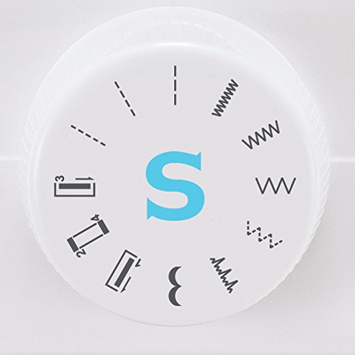 Easy threading system. Simple stitch selection. Straight, zigzag, satin, blind hem, decorative scallop and buttonhole stitches included. Heavy duty metal frame. Free accessories including 3 presser feet. Free arm. Automatic bobbin system. Dual spool pins. Carry handle.Feature