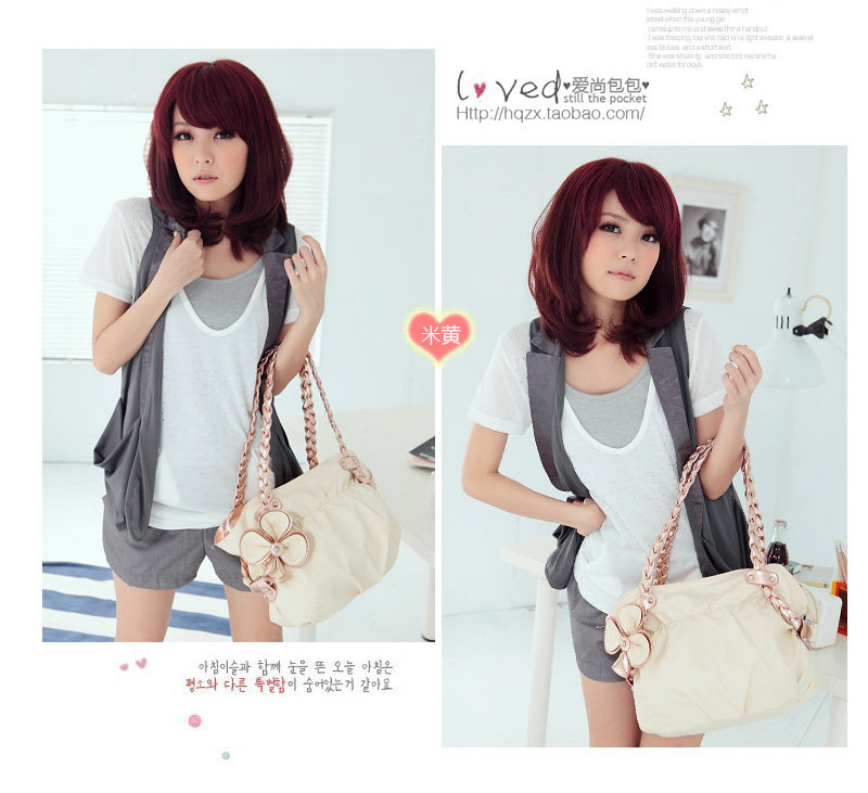 ★ with a unique twist braided leather handles and decorative flower color