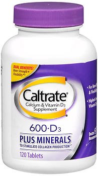 Caltrate® 600+D3 Plus Minerals has calcium plus collagen-supporting minerals to help your bones stay strong and flexible. Additionally, Caltrate® Plus Minerals has the most vitamin D3 to help maximize calcium absorption to support stronger, healthier bones.*Feature