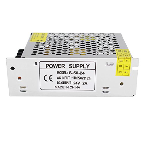 Aiposen 110V/220V AC to DC 24V 2A 48W Switch Power Supply Driver,Power Transformer for CCTV camera/ Security System/ LED Strip Light/Radio/Computer Project(24V 2A)