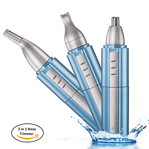 Nose Hair Trimmer, 3 in 1 Waterproof Nose Trimmer/Ear Hair Trimmer/Eyebrow Trimmer/Precision Detailer with LED Light, USB Charging Cable, Wet/Dry...